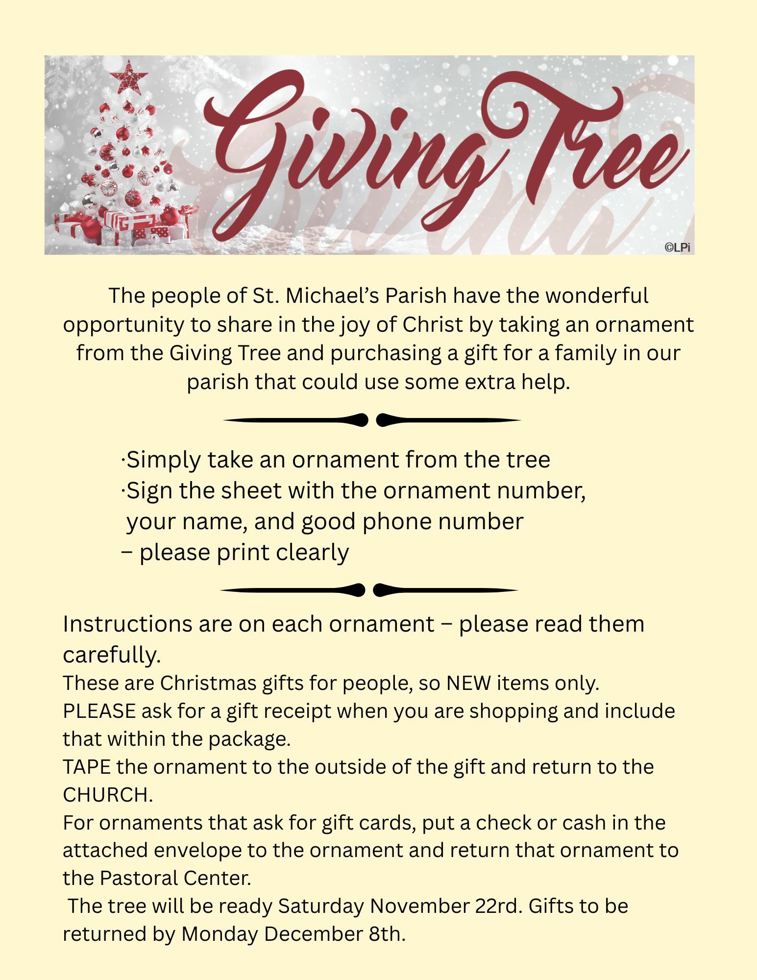 St. Michael’s Parish is a welcoming community of Catholic Christians, rich in tradition. We are inspired by the Holy Spirit and guided by the Word of God.