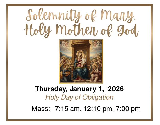 Sundays: 7:30am | Mon-Thu: 7:15am | Friday: 12:10pm | Saturday: 7:15am
