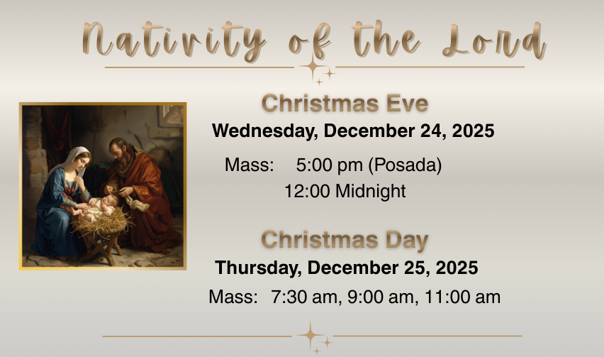 Sunday: 7:30 AM, 9:00 AM,11:00 AM, 5:00 PM