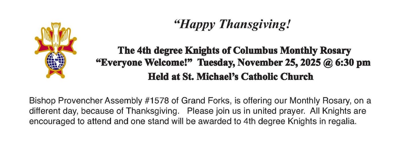 There are six Jubilee sites in the Diocese of Fargo and the faithful are encouraged to visit these sites and gain the Jubilee Year Indulgence. At each site the faithful are welcome to collect a coin unique to that site as a reminder of their pilgrimage. Make sure to find the Jubilee poster at each site with a QR code for pilgrims to log in their visit. If you visit all six sites, you can receive the Diocese of Fargo coin. There are brochures about the coins at each site. A free will donation is requested for the coins, (St. Michaels $10.00).